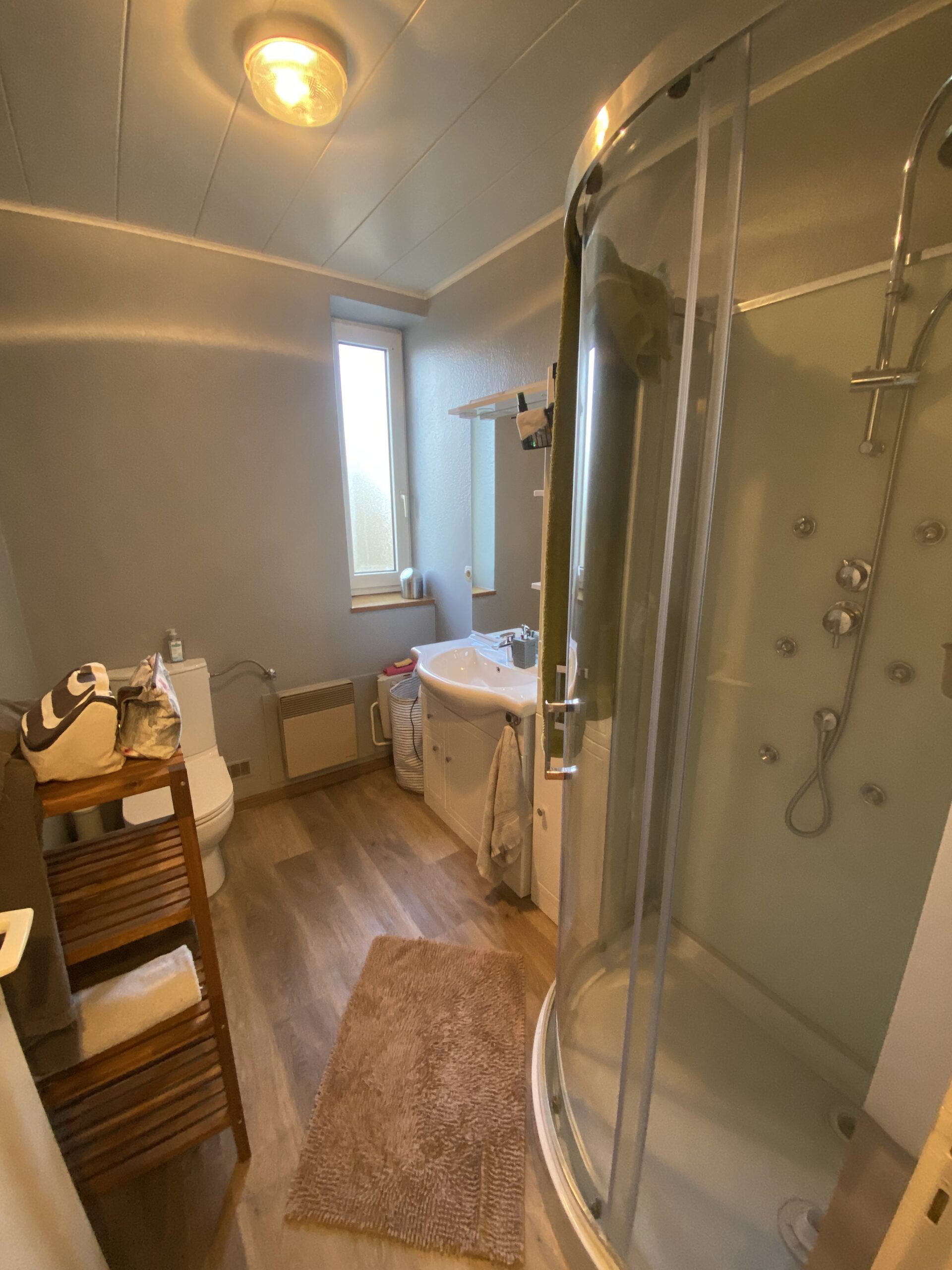 1 chambre – salle de bain avec douche et WC – buanderie – cellier.