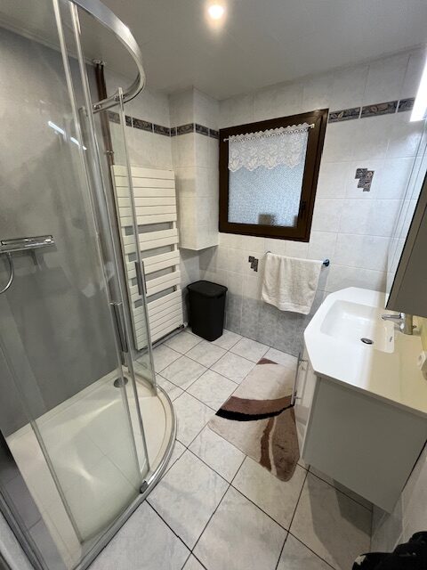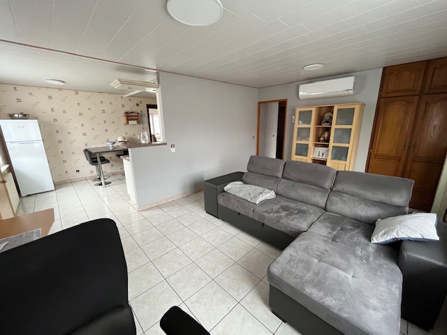 Elle se compose d’un bel espace de vie lumineux avec salon, salle à manger et cuisine équipée, donnant accès à une agréable terrasse couverte et à un terrain entièrement clos, bien agencé. 2 chambres dont 1 avec de nombreux rangements intégrés – salle de bain avec douche et WC séparés. Un GARAGE de 30 m2 avec porte motorisée ainsi que 2 stationnements privatifs complètent ce bien.